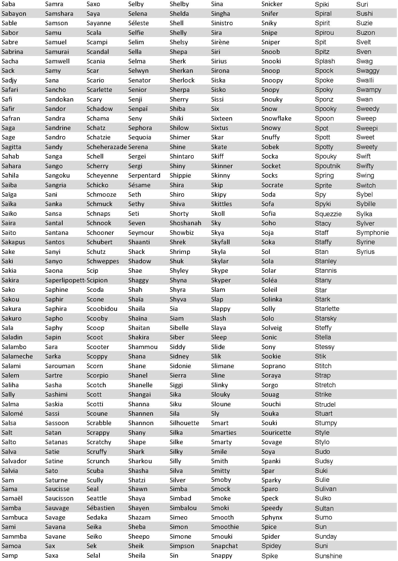 Si quelques doutes subsistent encore pour donner un nom à votre nouvel "ami", voici une sélection de prénoms commençant par la lettre S.