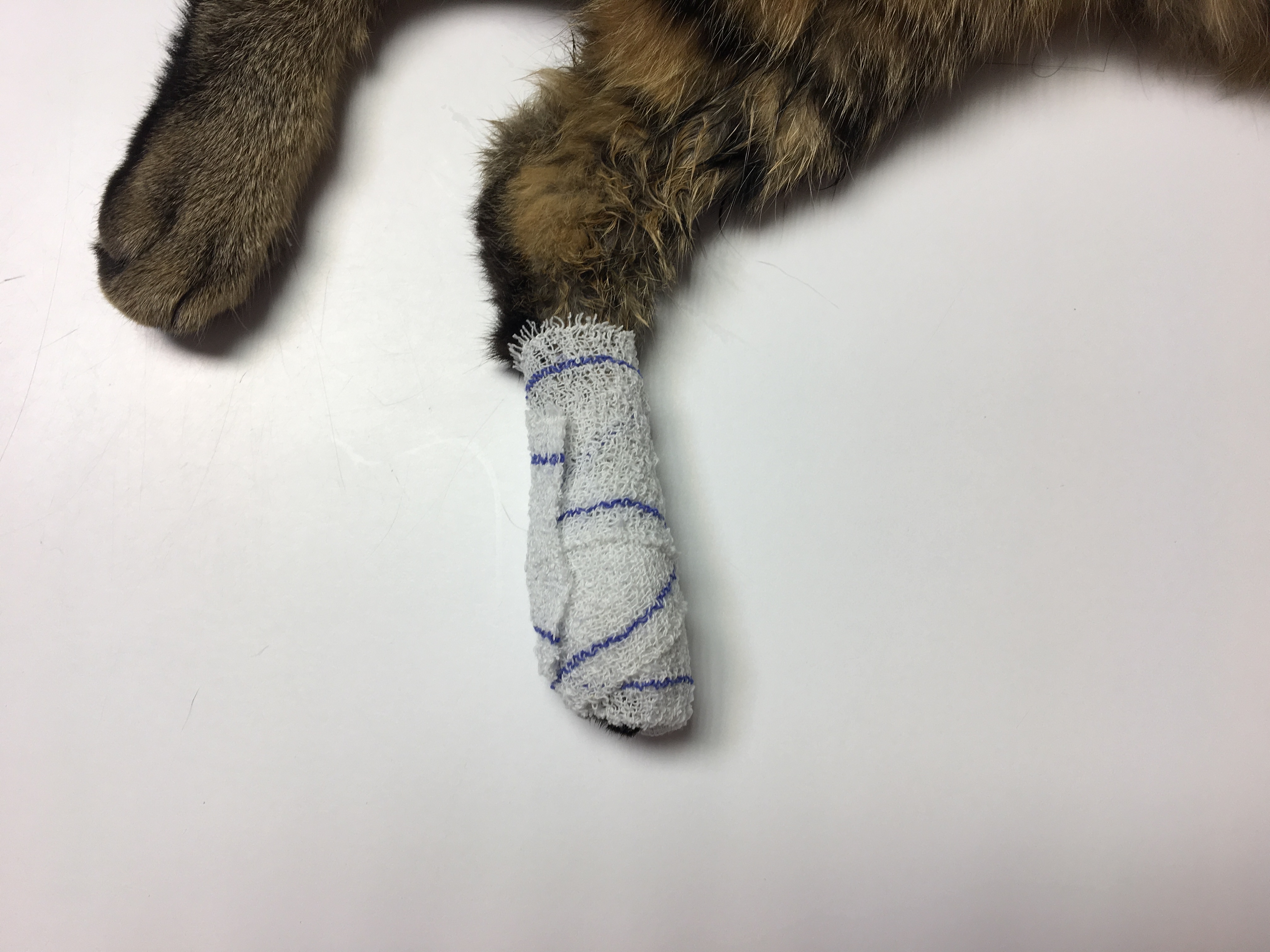 Pour ces deux raisons, il faut toujours essayer d’enrouler le pansement autour d’un membre ou du corps et il faut faire en sorte d’utiliser du matériel qui sera adhérent sur les poils.