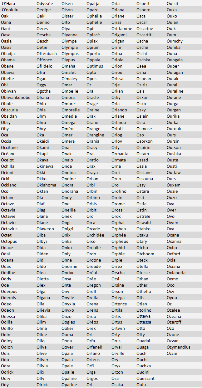 Liste des prénoms en "O"